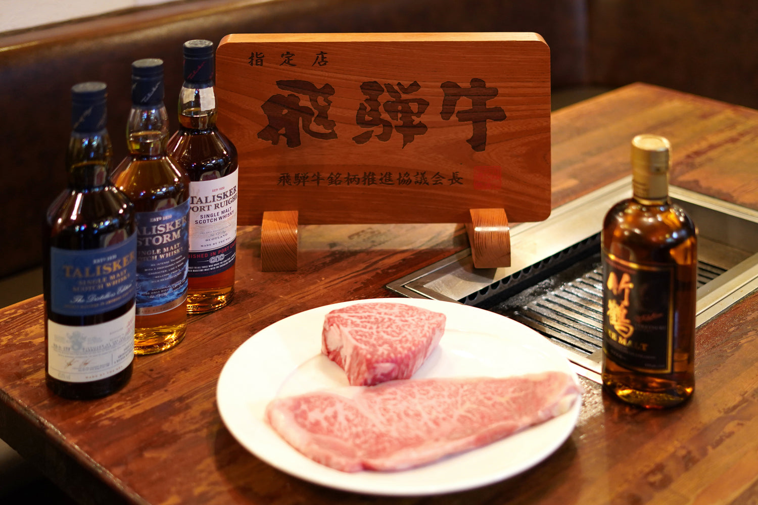 ジュッ!と刺激的な音を立て、焼き上がった肉。したたる肉汁とともに、口に放り込み、極上の飛騨牛・黒毛和牛A5ランクの旨味を存分にお楽しみください。